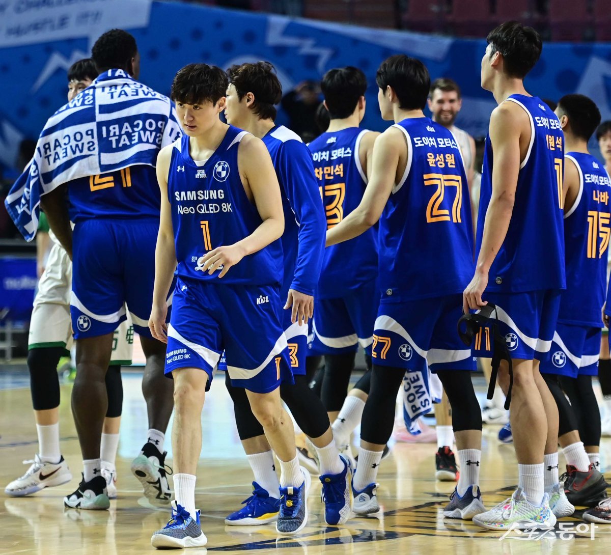 30일 서울 잠실실내체육관에서 열린 ‘2023-2024 정관장 프로농구’ 서울 삼성과 원주 DB의 경기에서 73-108로 패한 삼성 이동엽이 아쉬워하고 있다.