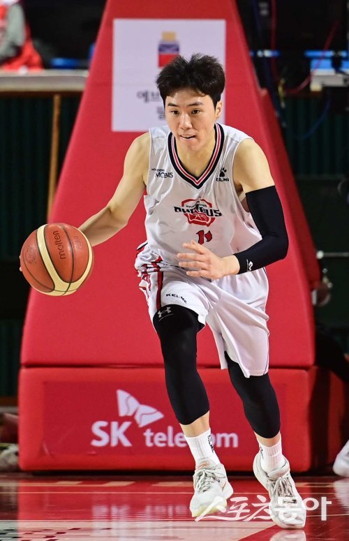 이우석은 4일 벌어진 ‘2023~2024 정관장 프로농구’ 정규리그 5라운드 서울 SK와 홈경기에서 24점·7리바운드·5어시스트·3스틸의 전천후 활약으로 팀의 92-80 승리를 이끌었다. 한 차례 연장전을 치르긴 했으나, 24점은 이우석의 올 시즌 한 경기 최다득점이다. 필드골 성공률이 높았다는 게 고무적이다. 16개의 필드골을 시도해 11개를 적중시키며 68.8%의 성공률을 기록했다. 3점슛도 1개를 시도해 성공시켰다.