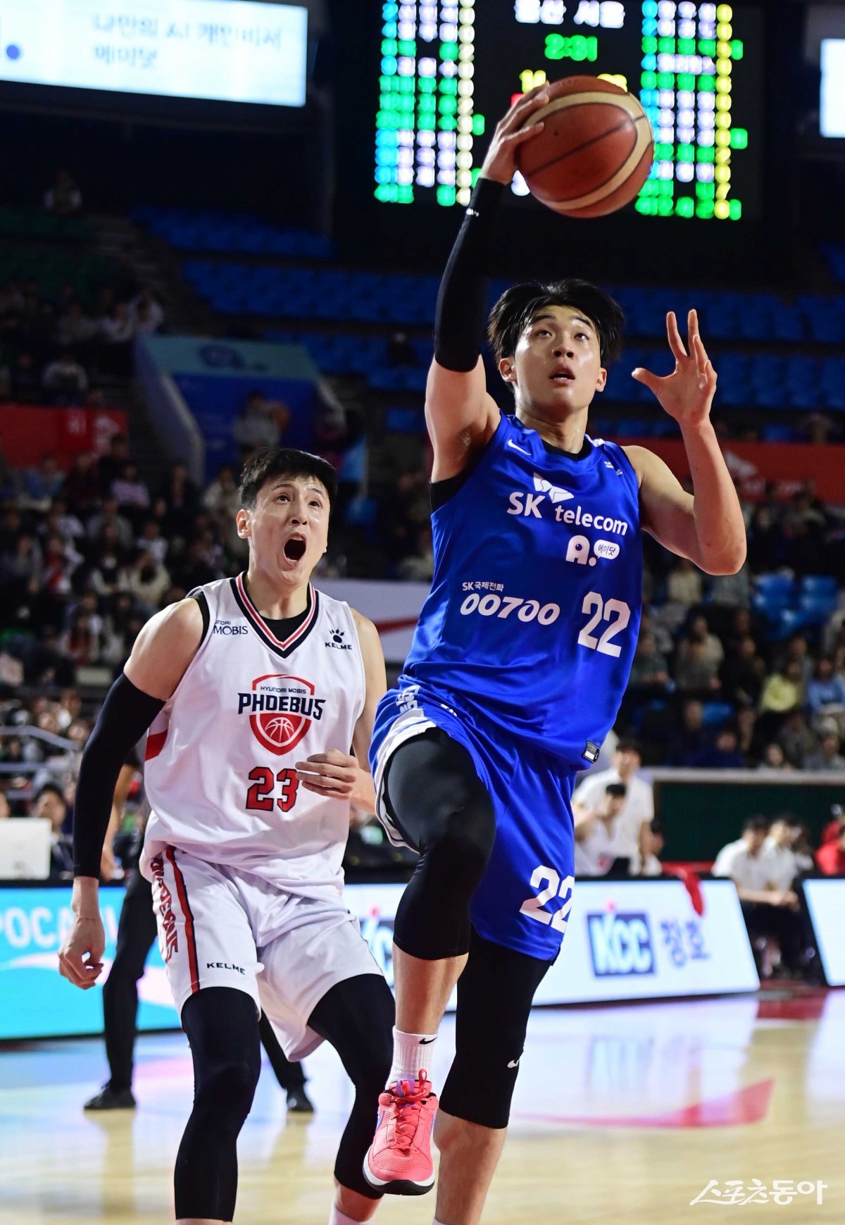 5일 서울 잠실학생체육관에서 열린 ‘2023-2024 정관장 프로농구’ 서울 SK와 울산 현대모비스의 경기에서 SK 오재현이 현대모비스 수비를 뚫고 슛을 하고 있다.
