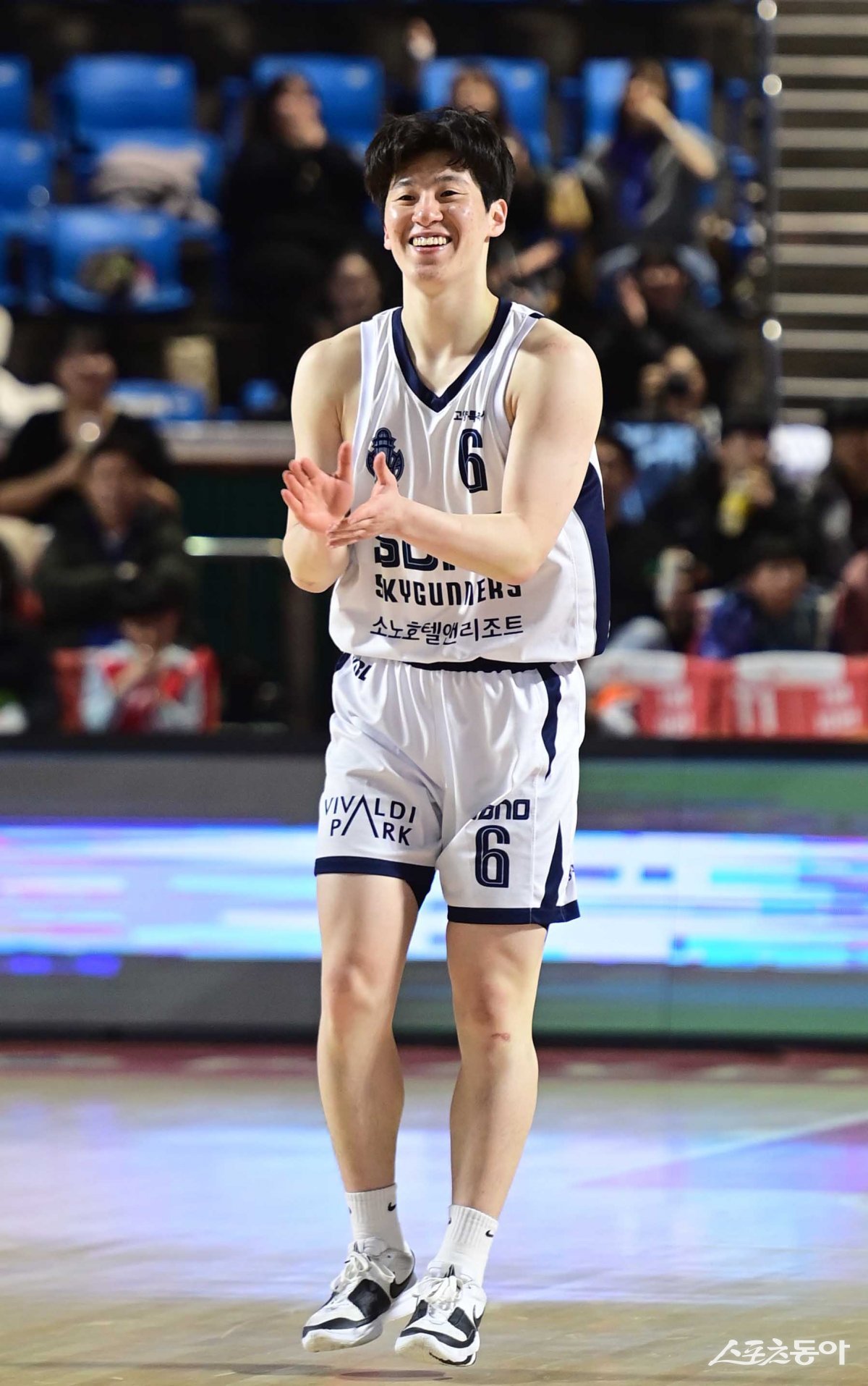 19일 서울 잠실학생체육관에서 열린 ‘2023-2024 정관장 프로농구’ 서울 SK와 고양 소노의 경기에서 3점슛을 성공시킨 소노 이정현이 기뻐하고 있다.