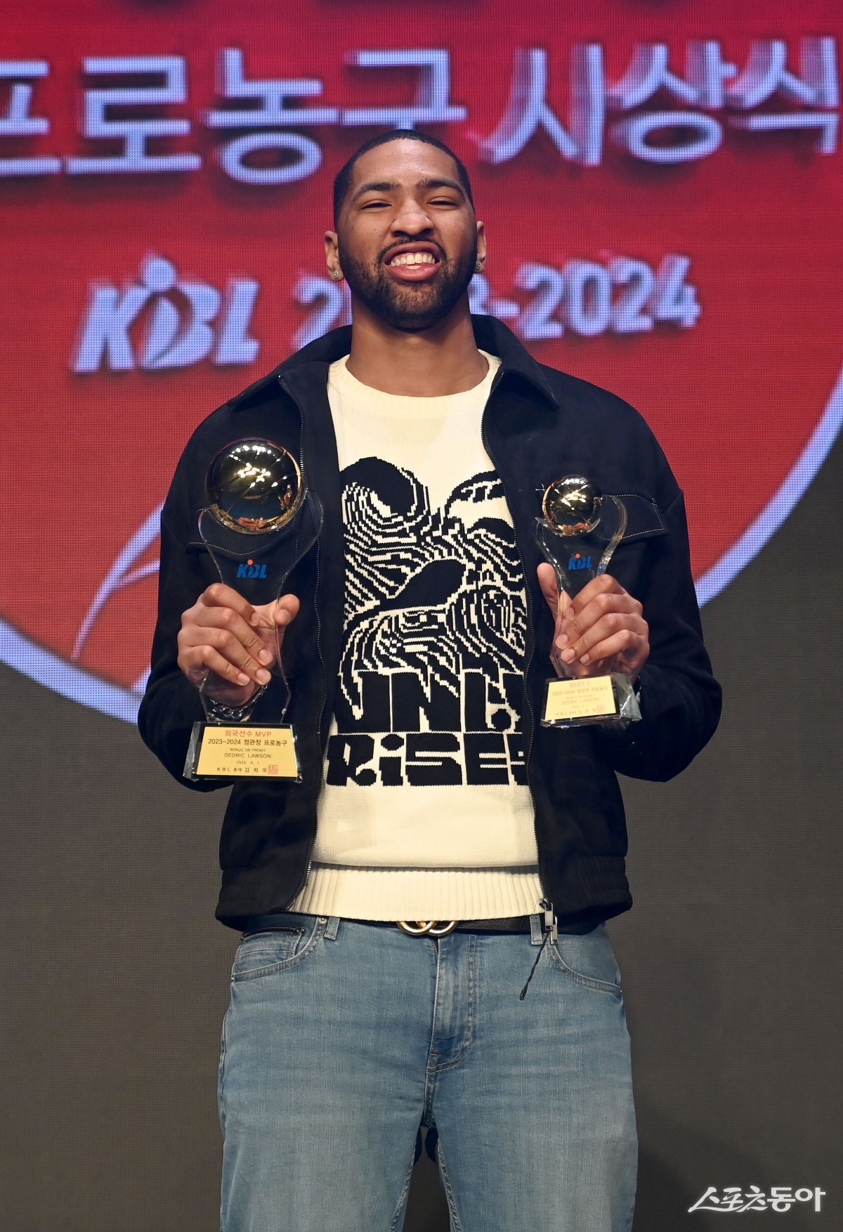 1일 그랜드 인터컨티넨탈 서울 파르나스에서 2023-2024 프로농구 시상식이 열렸다. 외국선수 MVP를 수상한 DB 로슨이 기념촬영을 하고 있다.