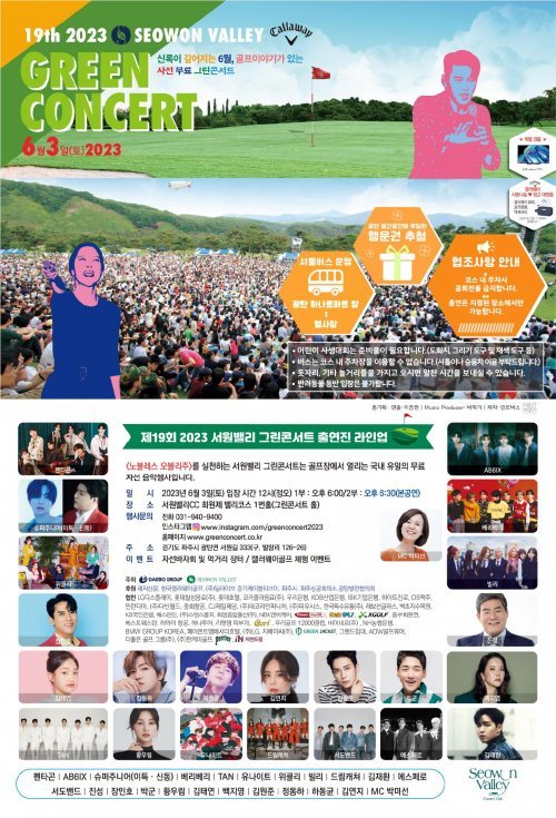 대한민국을 대표하는 골프장 한류콘서트 ‘2023 서원밸리 자선무료 그린콘서트’가 3일 경기 파주시 광탄면에 있는 서원밸리CC에서 화려하게 펼쳐진다.