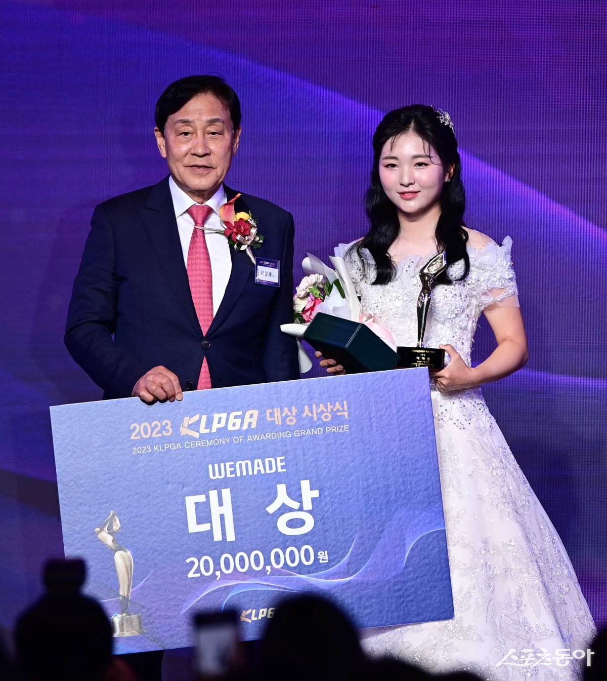 20일 서울 강남구 삼성동 그랜드인터컨티넨탈 서울파르나스에서 열린 ‘2023 KLPGA 대상 시상식’에서 대상을 수상한 이예원이 기념 촬영을 하고 있다.