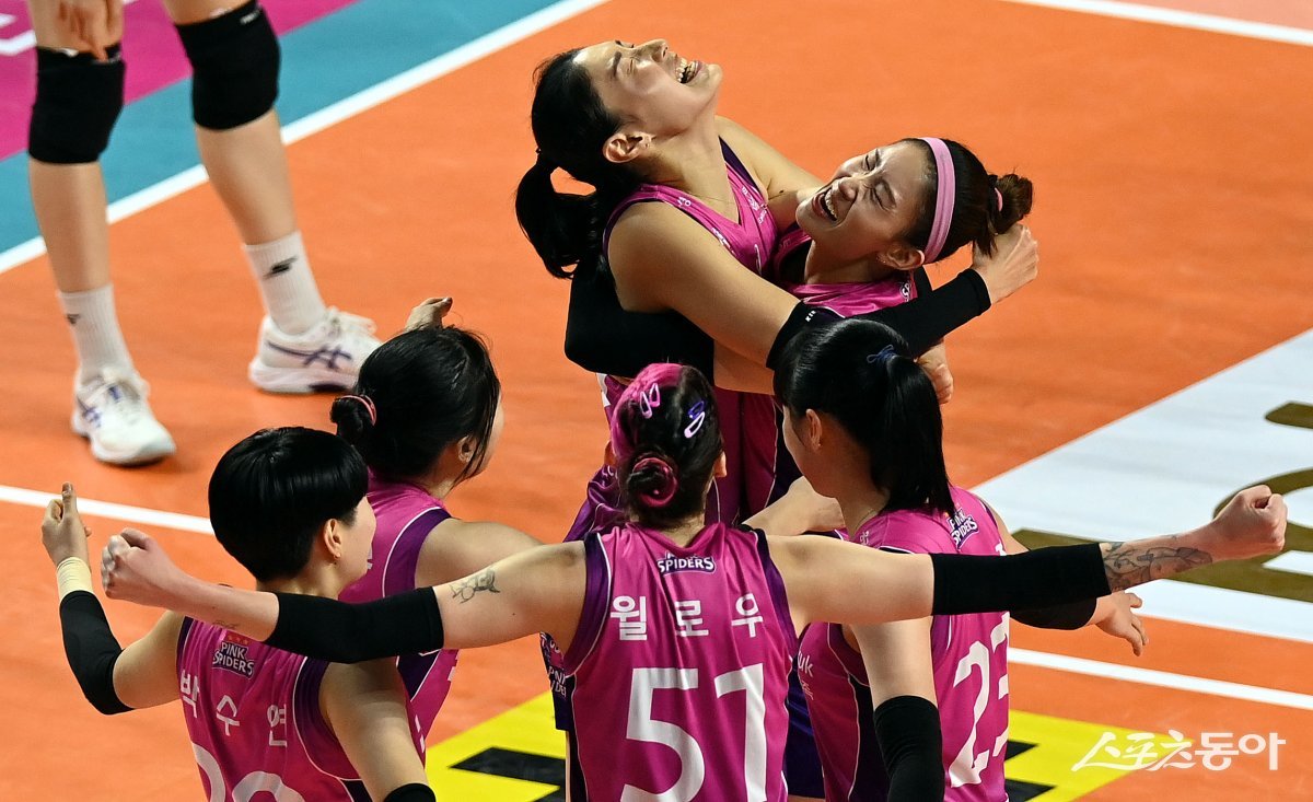 26일 인천 삼산월드체육관에서 ‘2023-2024 도드람 V리그’ 인천 흥국생명과 대전 정관장의 여자부 플레이오프 경기가 열렸다. 흥국생명 김연경과 김수지가 기쁨을 나누고 있다.