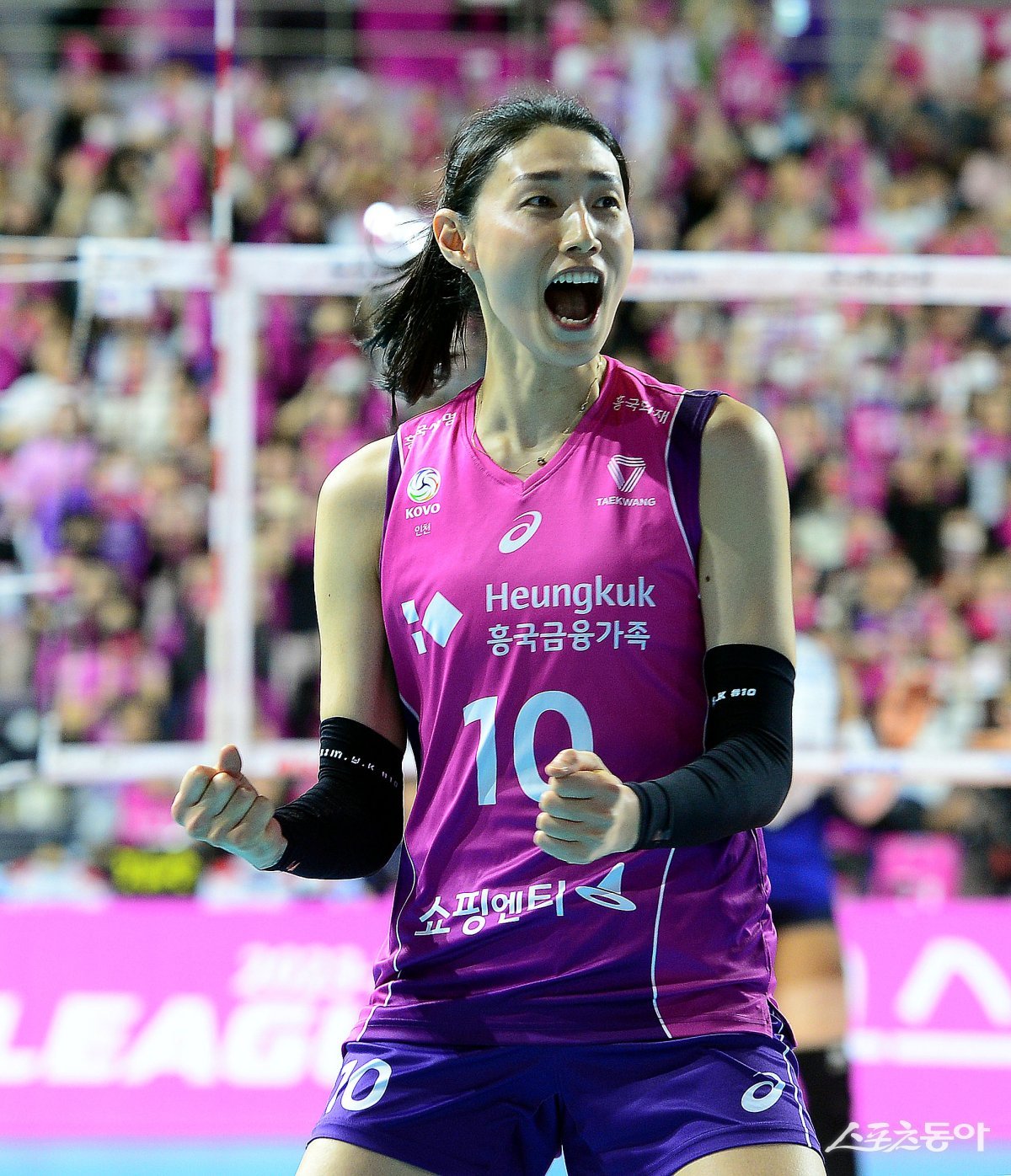 1일 인천 삼선월드체육관에서 ‘2023-2024 도드람 V리그’ 인천 흥국생명과 수원 현대건설의 여자부 챔피언결정전 3차전 경기가 열렸다. 흥국생명 김연경이 득점을 올린 후 포료하고 있다.