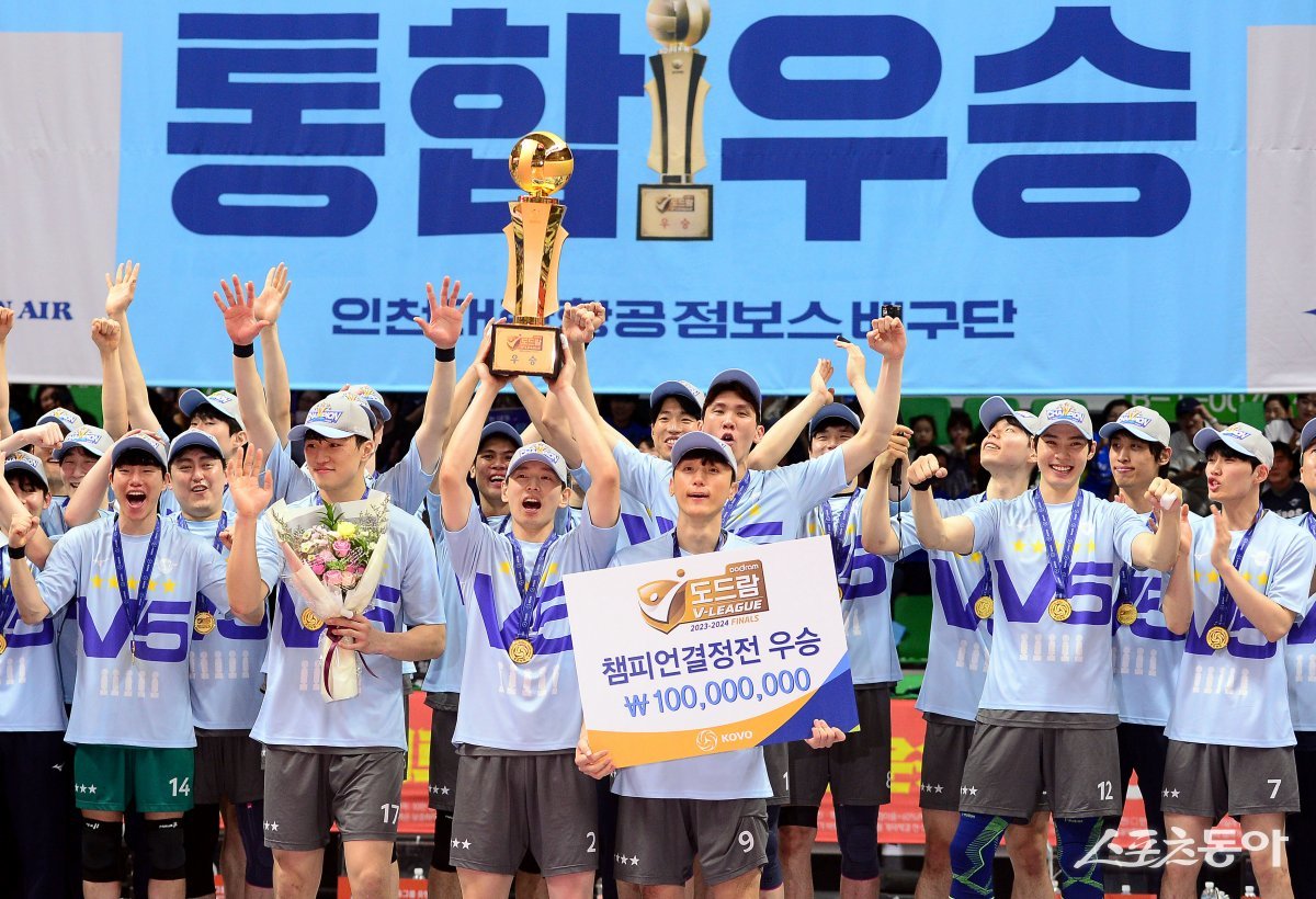 대한항공은 2일 안산상록수체육관에서 벌어진 OK금융그룹과 ‘도드람 2023~2024 V리그’ 남자부 챔피언 결정전(5전3선승제) 3차전 원정경기에서 세트스코어 3-2로 이겨 3전승으로 우승했다. 사상 첫 통합 4연패이자, 통산 5번째 챔피언 결정전 우승이다. 역대 챔피언 결정전 최다 우승팀 삼성화재(8회)와 격차까지 좁히면서 의미를 더했다.