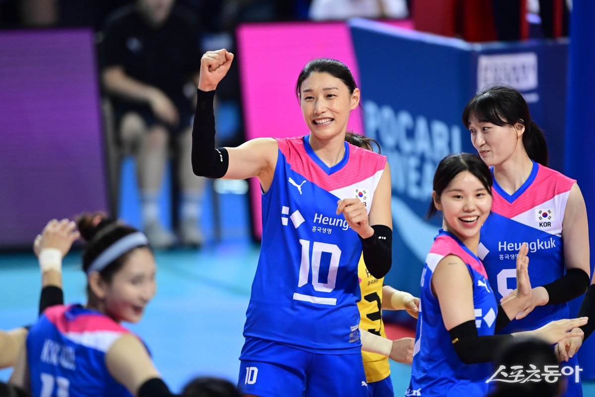 8일 서울 잠실실내체육관에서 열린 ‘김연경 초청 세계 여자배구 올스타전(KYK Invitational 2024)‘ 팀 대한민국과 팀 코리아의 경기에서 70-60으로 승리한 팀 대한민국 김연경이 기뻐하고 있다.