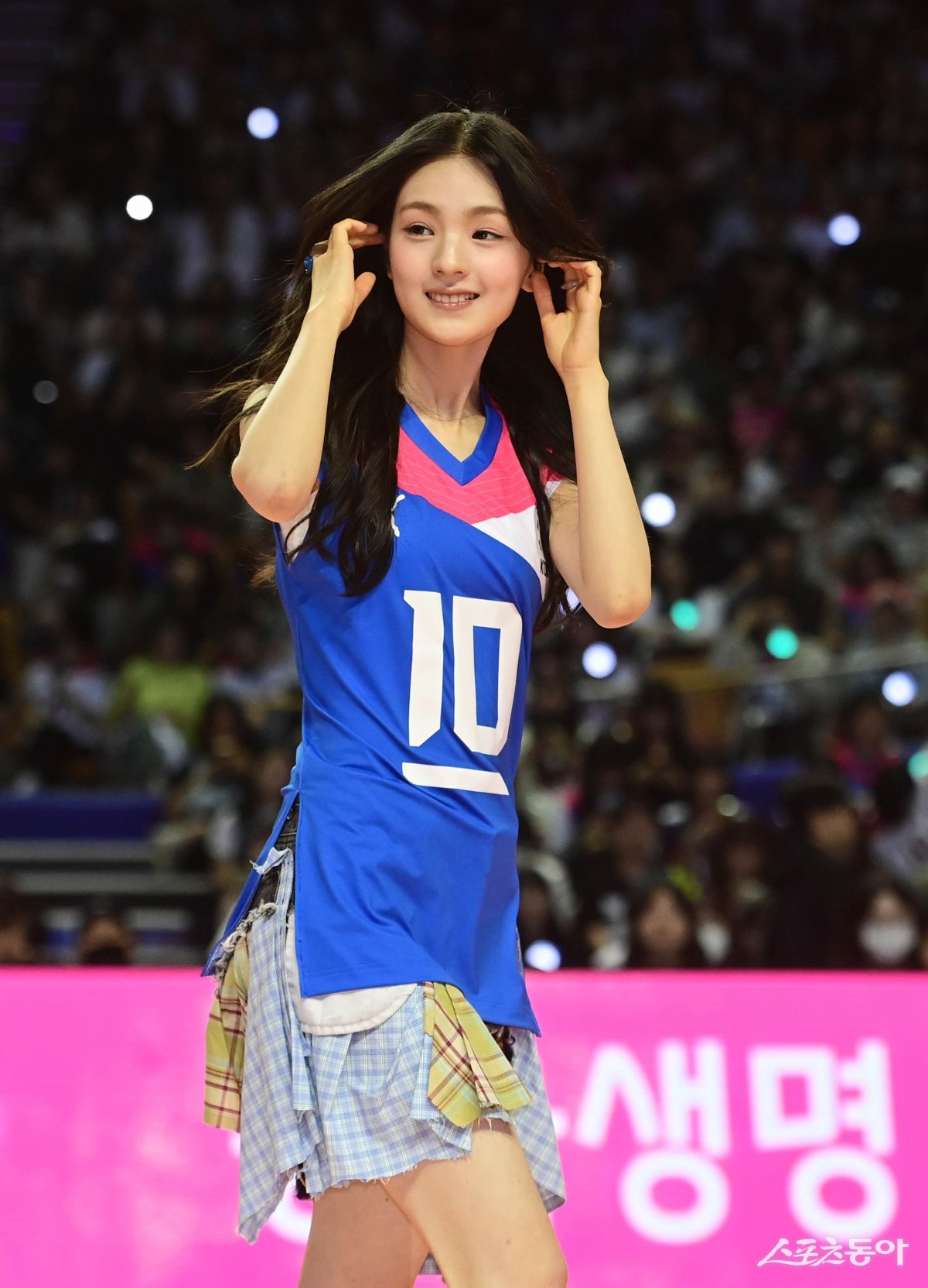 8일 서울 잠실실내체육관에서 열린 ‘김연경 초청 세계 여자배구 올스타전(KYK Invitational 2024)‘ 국가대표 은퇴식에 앞서 가수 규빈이 공연을 펼치고 있다.