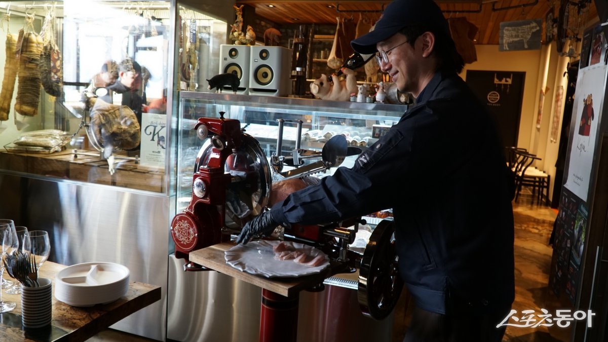 남원의 샤퀴테리 전문 업장 ‘더 찹샵’의 박자원 대표. 국내에서는 유일하게 원료 흑돼지 사육부터 발효, 가공까지 모두 직접하는 샤퀴테리아로 수입산 못지 않는 풍미의 하몽이나 잠봉, 살라미 등을 맛볼 수 있다 남원|김재범 기자 oldfield@donga.com
