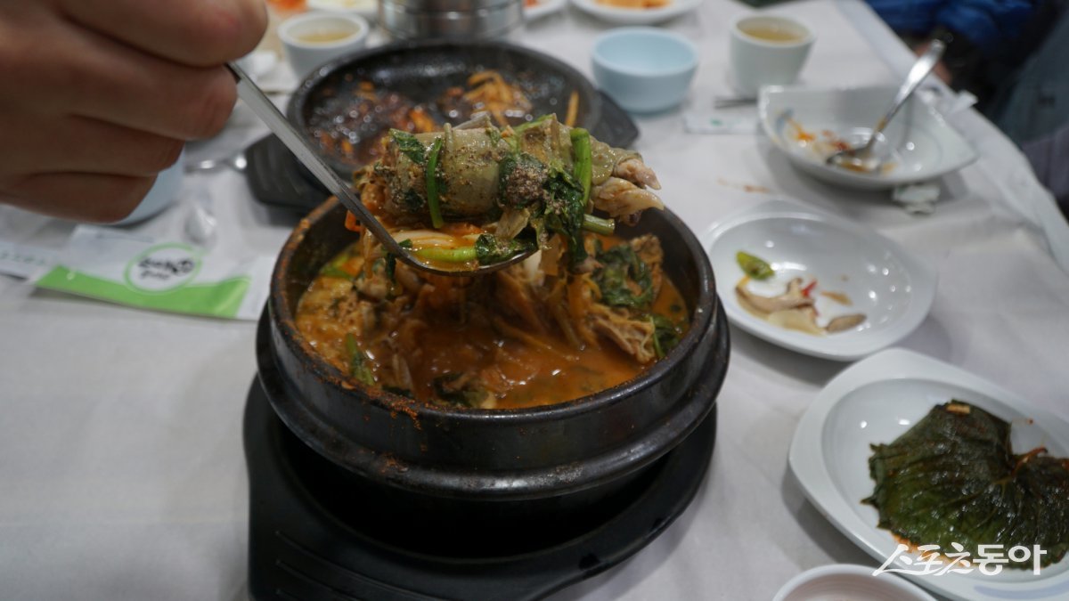 남원 죽항동 황토식당의 추어탕. 오랜 세월 남원을 대표하는 음식이 추어탕인데, 남원에서는 미꾸리를 갈아 된장을 풀고 들깨가루를 넣은 육수에 시래기를 듬뿍 넣고 끓여낸다 남원|김재범 기자 oldfield@donga.com