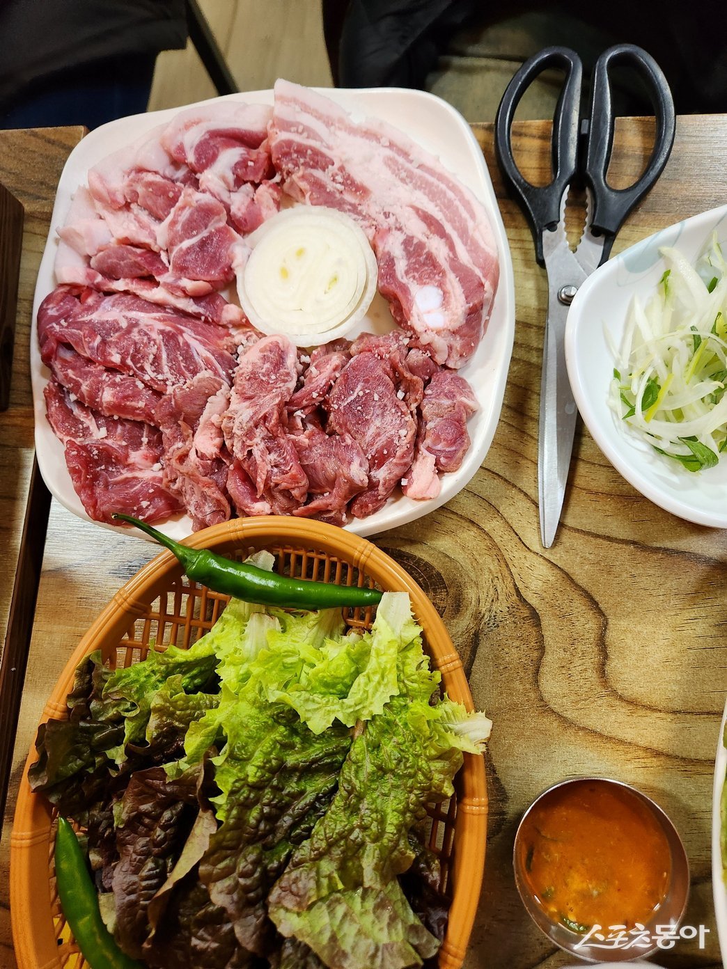다양한 부위별로 나온 남원 쌍교동 흑돼지 맛집 거리 ‘소문난 오돌뼈’의 흑돼지 모둠. 이곳에선 독특한 식감의 양념오돌갈비와 쫄깃한 비계 맛이 특징인 덜미살 등 다양한 부위를 만날 수 있다 남원|김재범 기자 oldfield@donga.com