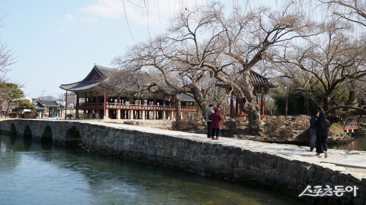 광한루원의 오작교와 광한루를 찾은 관광객들. 다리 위에서 광한루를 배경으로 사진을 찍는 것이 남원 여행의 대표 인증샷이다 남원|김재범 기자 oldfield@donga.com