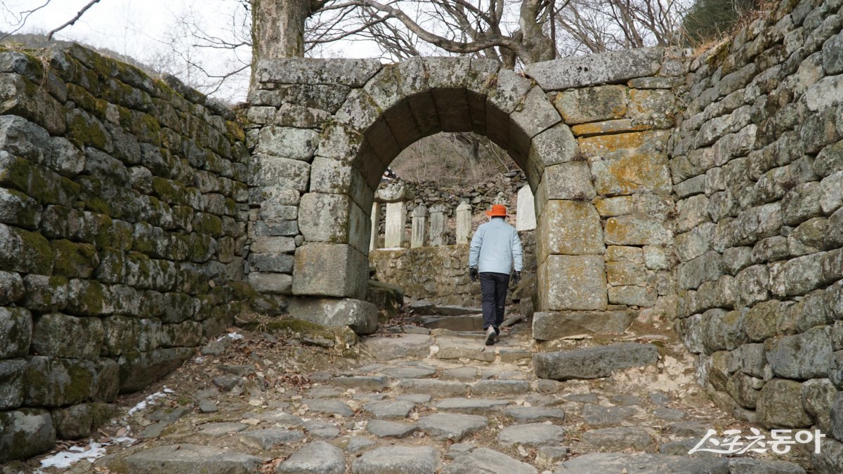남원 교룡산성 동문의 홍예와 옹성. 해발 518m인 교룡산을 에워싼 둘레 3.1km의 석성으로 남원 지역 20여개 산성 중 형태를 사장 잘 보존하고 있다 남원|김재범 기자 oldfield@donga.com