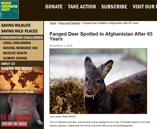 미 과학매체 라이브 사이언스는 지난 3일(현지시각) “국제야생동물보존협회 아시아지부 연구진이 아프가니스탄 북동부 산림지역에서 ‘뱀파이어 노루’의 살아있는 모습을 발견했다”고 밝혔다.