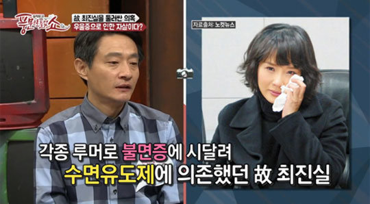 배우 故최진실의 자살이 졸피뎀 성분의 수면유도제 때문일 수도 있다는 추측이 제기됐다.